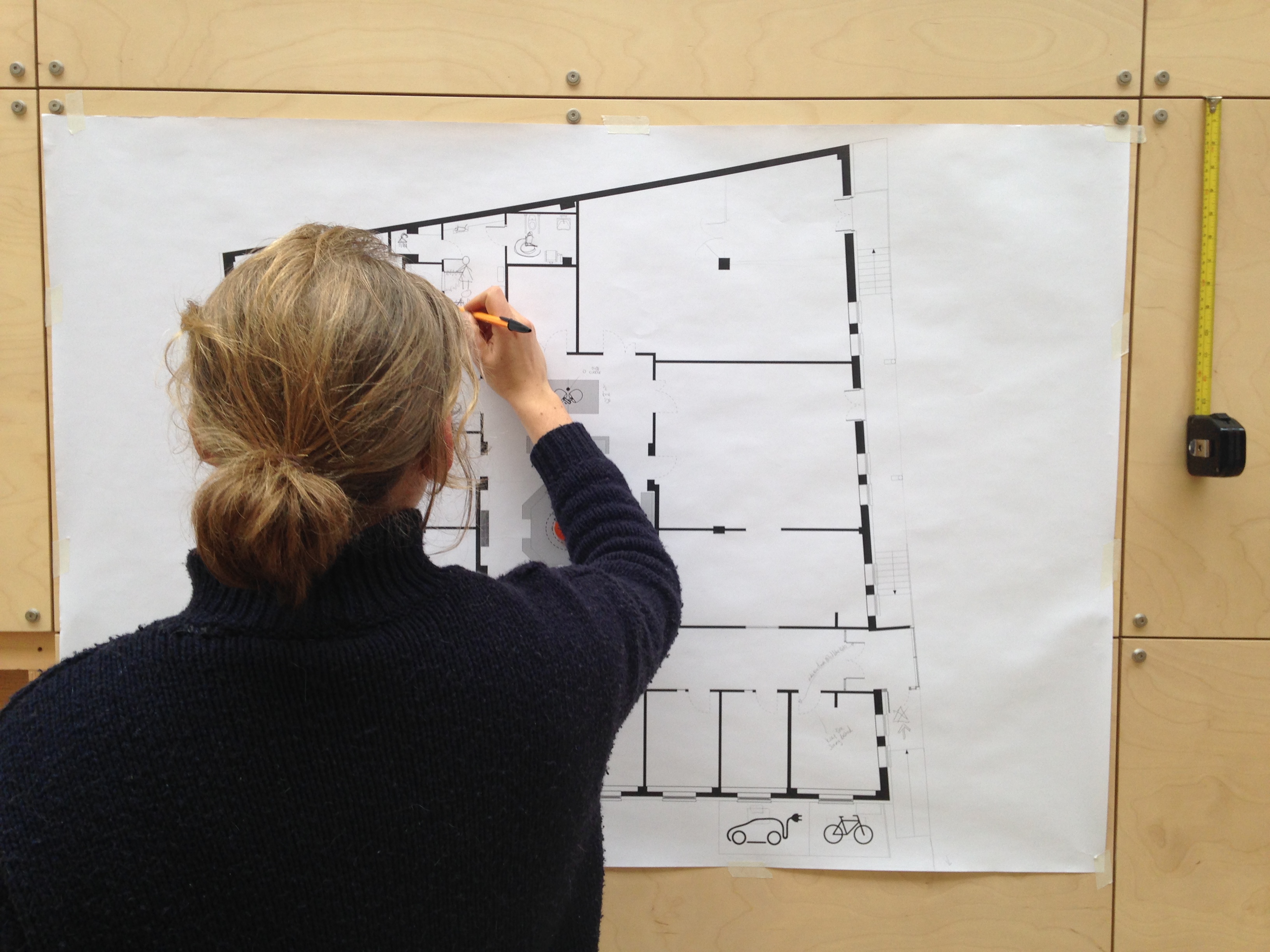 Wayfinding system, helping visitors find the appropriate studio in the Warehouse complex. Cleverly incorporated into the beautiful exisiting furniture, this in-situ engraved diagram solves the location problem whilst sympathetically fitting in with the aesthestic of the space.
