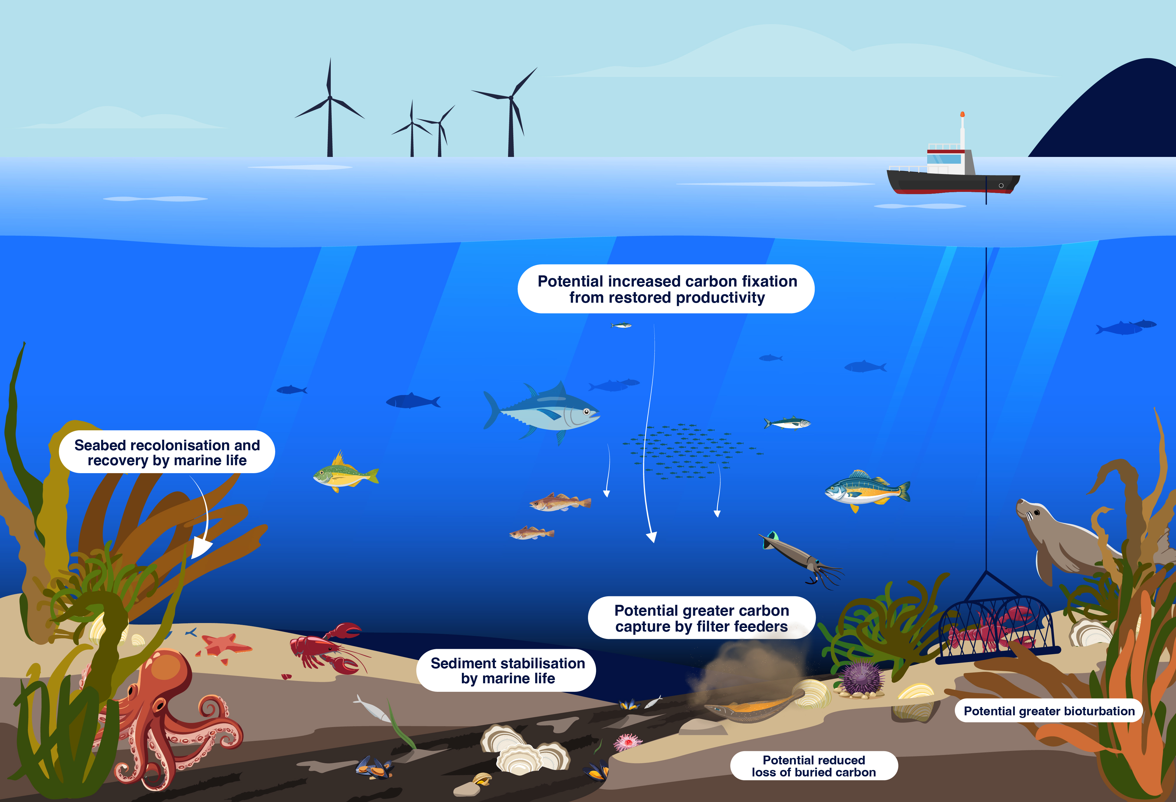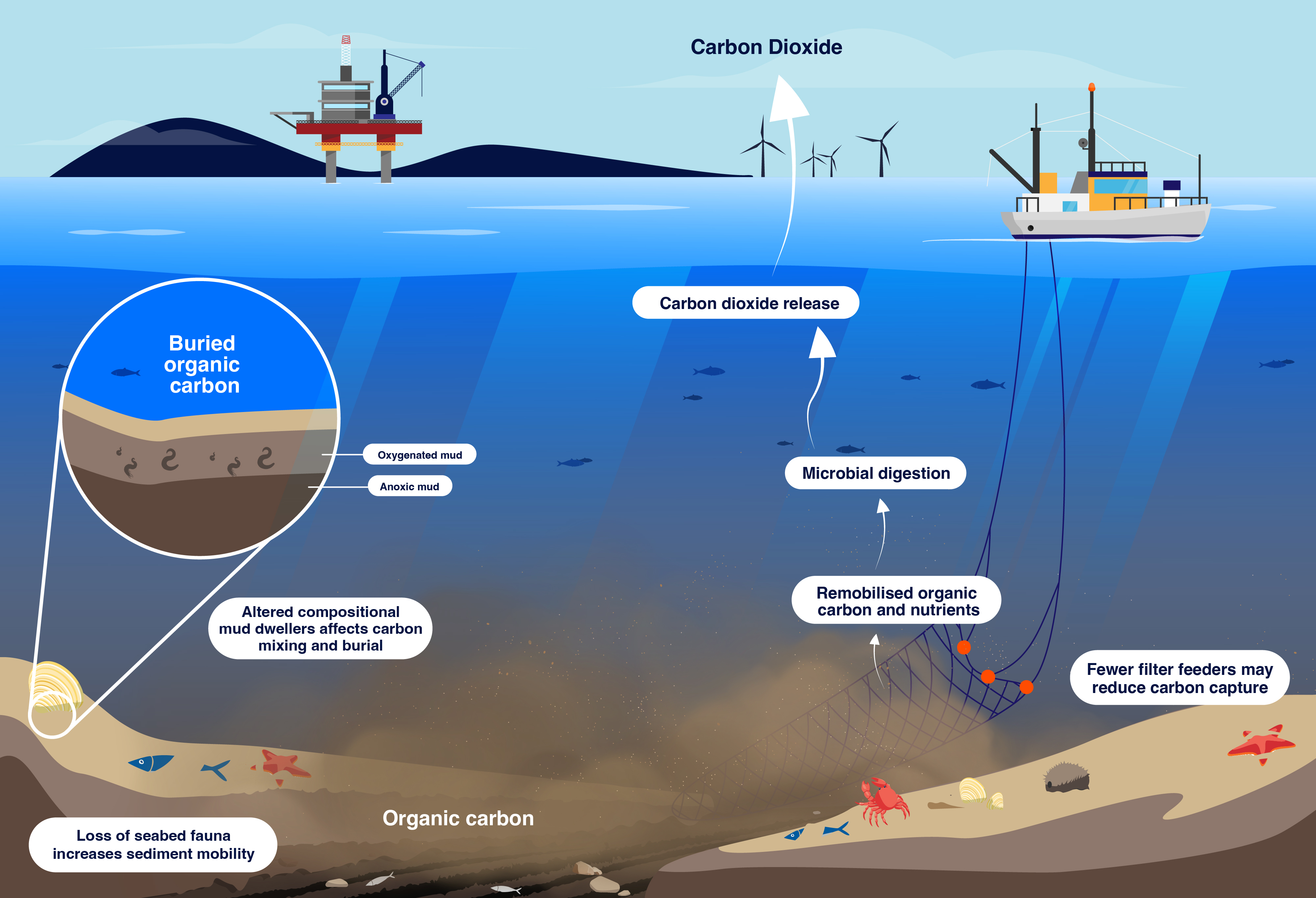 We were tasked with providing visuals for presentations that discussed complex relationships between ocean currents, carbon accumulation and the results of anthropogenic stressors, such as bottom trawling.